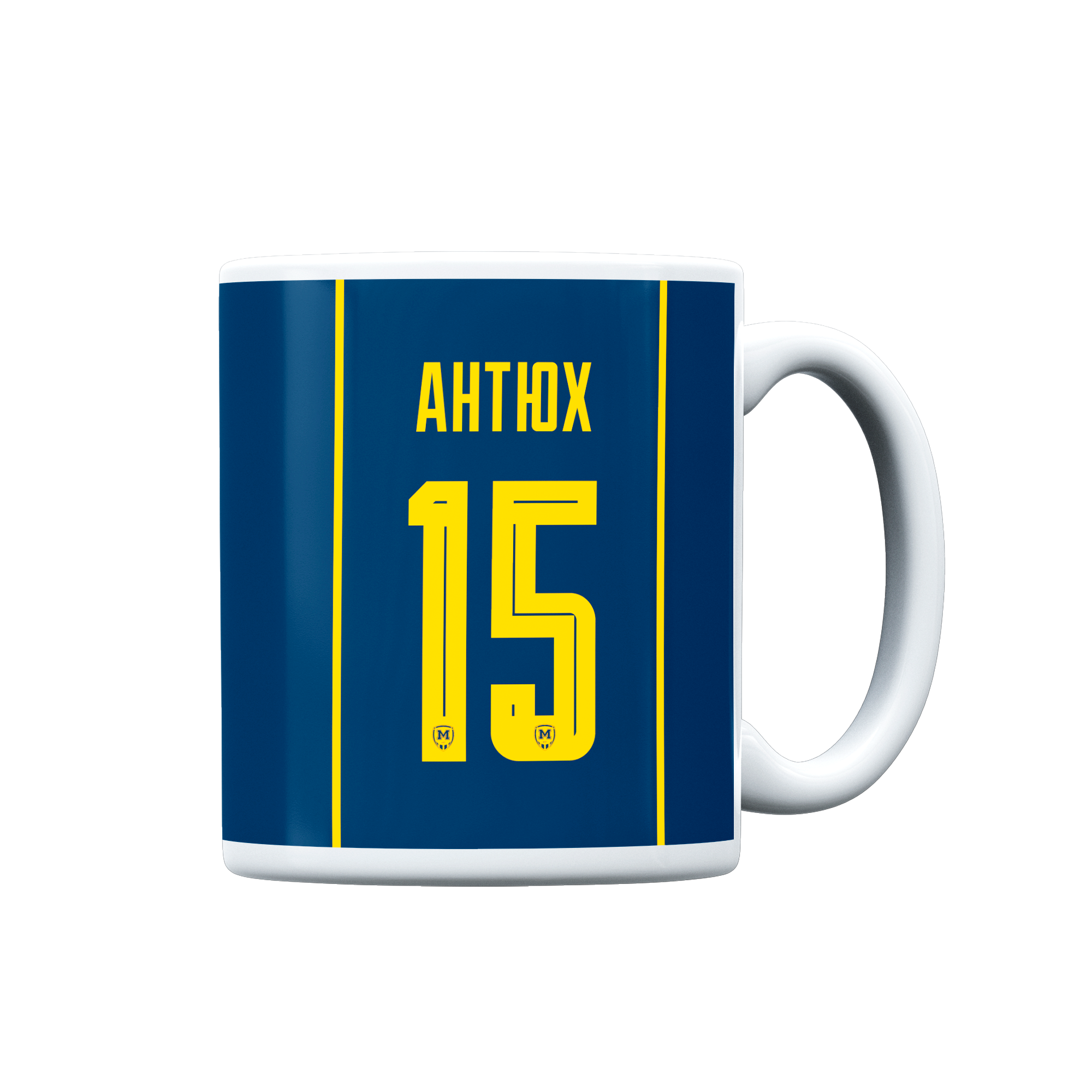 A stylish collectible mug featuring the colors of the away kit, with the name and number of Metalist 1925 player Denys Antyukh. It boasts a vibrant design and high-quality, durable printing. Perfect for everyday use, it makes a wonderful gift for a true Metalist 1925 fan.