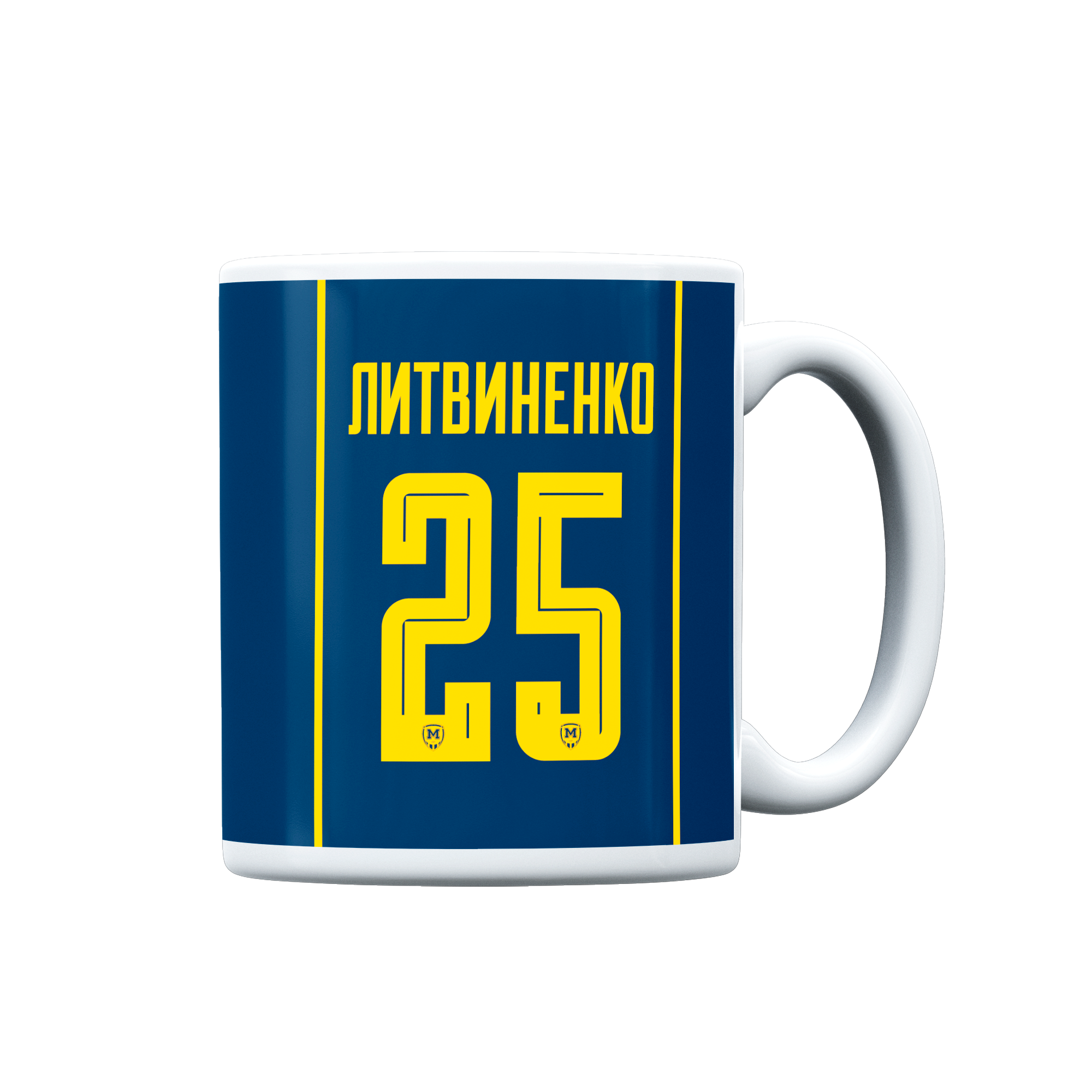 A stylish collectible mug featuring the colors of the away kit, with the name and number of Metalist 1925 player Ivan Litvinenko. It boasts a vibrant design and high-quality, durable printing. Perfect for everyday use, it makes a wonderful gift for any true Metalist 1925 fan.