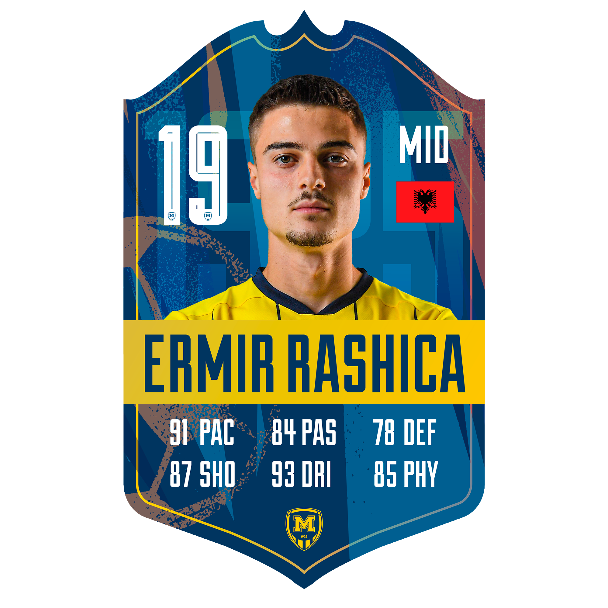 A personalised Metalist 1925 player card, made from durable PVC, in A3 format.